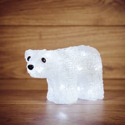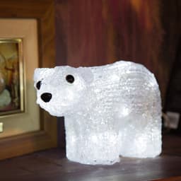 Акриловые фигуры за несколько лет вызвали большой интерес у дизайнеров и частных клиентов. С каждым годом расширяется не только ассортимент акриловых фигур, но и появляются новые технологии нанесения акрила. Эти яркие, светящиеся объемные фигуры, состоящие из металлического каркаса, акрила и светодиодов, применяются для оформления и создания новогодней атмосферы в кафе, ресторанах, торговых центрах, магазинах, на площадях и перед входом, а также просто в частных домах и квартирах. Все фигуры укомплектованы понижающим трансформатором , что обеспечивает безопасность при контактировании, а так же имеют степень защиты IP 44, что позволяет использовать их как в помещении, так и на улице. Акриловая светодиодная фигура "Белый мишка" высотой 15 см, светящаяся более чем 20 ярких диодов, выполнена по специальной технологии нанесения акрила имитируя шерстяной покров реального животного. Она позволит Вам создать ту самую, настоящую новогоднюю атмосферу и принести сотни радостных улыбок.