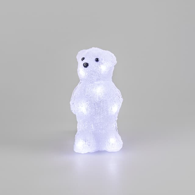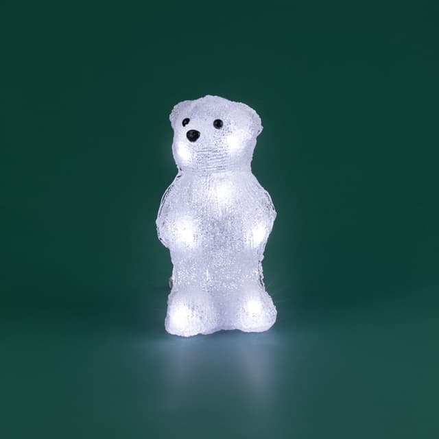 Акриловая светодиодная фигура «Медвежонок» высотой 22 см — интересное решение для оформления интерьера, которое станет ярким акцентом, выгодно подчеркнет особенности дизайна и подарит ощущение уюта. 10 ярких светодиодов излучают белый свет нейтрального оттенка, мягко обрамляя контуры и создавая эффект объема. Корпус выполнен из прочного акрила, особая технология обработки поверхности обеспечивает приятную фактуру, визуально имитирующую плюшевую шерсть животного. Фигура работает от 3 батареек типа АА и полностью безопасна в использовании.