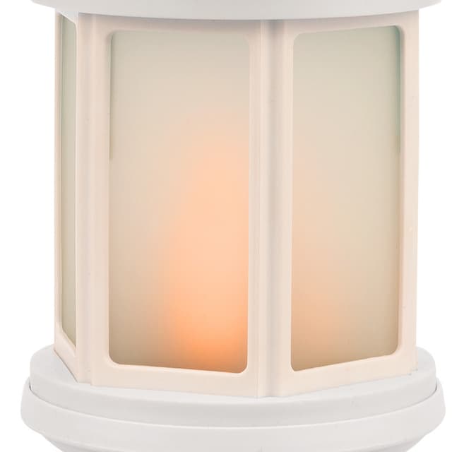 Декоративный фонарь с эффектом пламени свечи отличается стильным оформлением и необычным дизайном: свечка помещена в классический корпус белого цвета. Стекла с матовой поверхностью мягко рассеивают яркий поток, создавая комфортное для глаз свечение. Для подвешивания предусмотрено кольцо. За подсветку отвечает 21 белый диод, который экономно расходует заряд 2 батареек типа АА. Отсек для элементов питания находится в нижней части корпуса и надежно закрывается крышкой. Кнопка ON/OFF включает и выключает свечение.