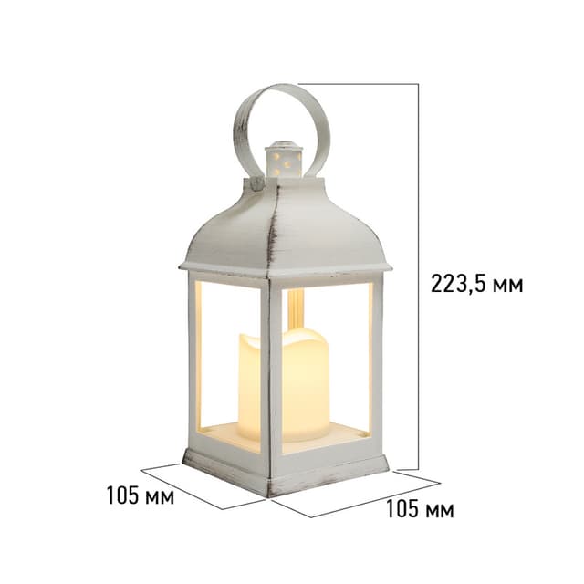 Декоративный фонарь со свечкой в белом корпусе станет оригинальным украшением интерьера, символизирующим тепло и уют. Корпус выполнен в белом цвете, который гармонично дополнит обстановку любого стиля. Аутентичная фигурка в виде свечи, в основе которой находится 1 диод, отбрасывает мягкие тени на окружающие предметы и поверхности, создавая атмосферу комфорта. Декоративный фонарь работает от 3 элементов питания типа ААА. На корпусе есть удобный переключатель ON/OFF.