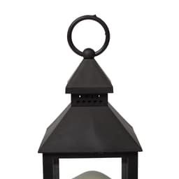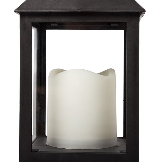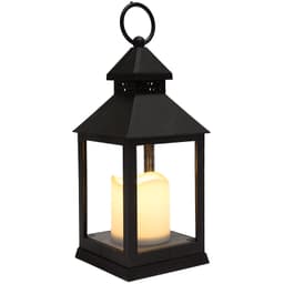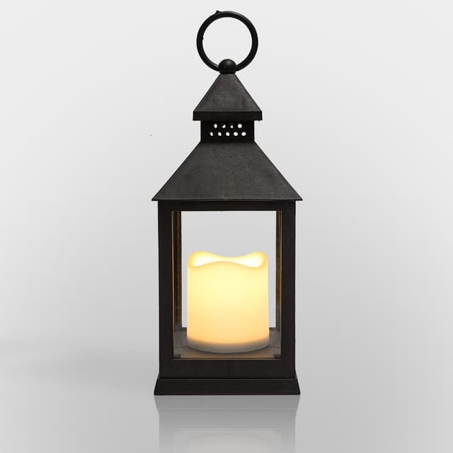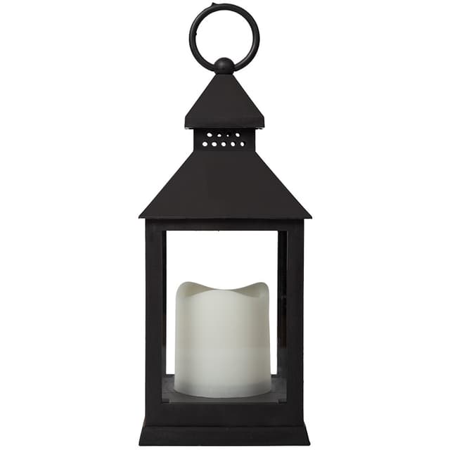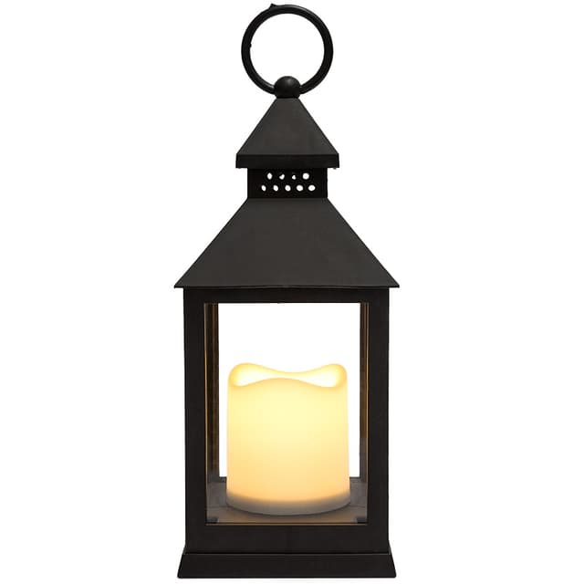 Декоративный фонарь со свечкой — оригинальное интерьерное украшение, которое принесет уют и тепло в ваш дом. Изделие предназначено для использования в интерьере. Декоративный элемент подсвечивается одним диодом, имитирующим теплое пламя свечи. Корпус черного цвета имеет высоту 24 см. Для размещения в подвешенном виде предусмотрено кольцо. Фонарь питается от 3 батареек типа ААА, специальный отсек закрывается при помощи крышки.