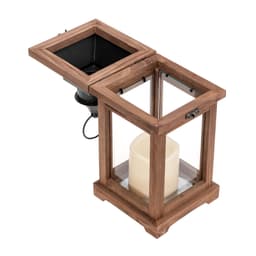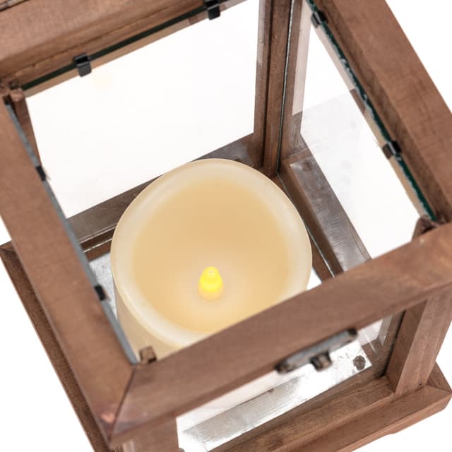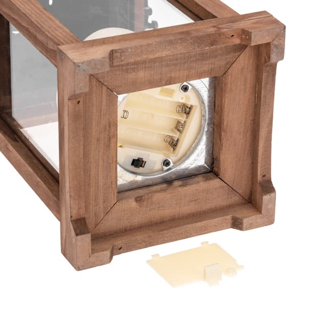 Декоративный фонарь со свечкой – оригинальное украшение, которое принесет уют и тепло в ваш дом. Изделие предназначено для использования в интерьере. Декоративный элемент подсвечивается одним диодом, имитирующим теплое пламя свечи. Корпус изготовлен из натурального дерева и имеет высоту 35 см. Для размещения в подвешенном виде предусмотрено кольцо. Фонарь питается от 2 батареек типа АА, специальный отсек закрывается при помощи крышки.