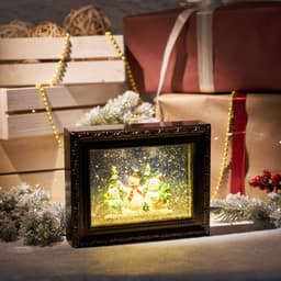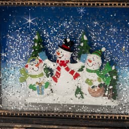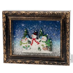 Декоративный светильник «Картина» с эффектом снегопада и подсветкой — прекрасный подарок к Новому году или Рождеству, который порадует и детей, и взрослых. Прозрачная колба наполнена жидкостью с металлизированным конфетти, которая начинает циркулировать сразу после включения. Сверкающий вихрь блесток уносит зрителей в волшебную зимнюю сказку, где главные герои — компания снеговиков — фигурки, стоящие в центре. Светильник работает от 4-х элементов питания типа АА, что дает возможность использования в любом удобном месте. USB-шнур входит в комплект. В случае потери или порчи шнура питания из комплекта в качестве замены использовать шнур 18-0235.