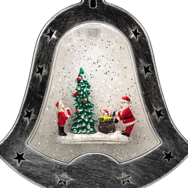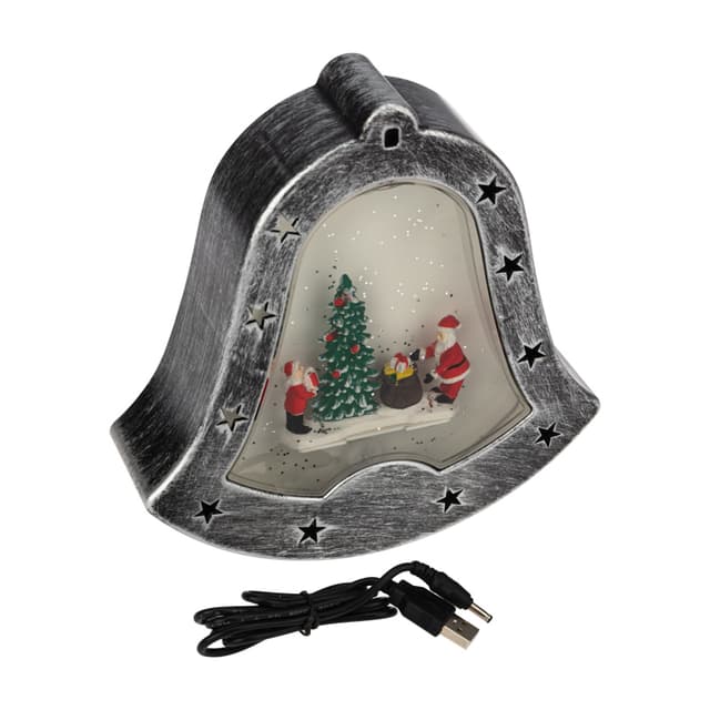 Декоративный светильник «Колокольчик» — необычное интерьерное украшение, которое создано, чтобы подчеркнуть уникальный стиль интерьера и внести атмосферу уюта в ваш дом. 4 диода излучают белый свет нейтрального оттенка и эффектно подсвечивают композицию из фигур, расположенную в центре прозрачной колбы. Вихрь сверкающего конфетти имитирует снегопад, приковывает внимание окружающих и создает праздничное настроение. Фонарь в виде колокольчика питается от 3 батареек типа АА, что дает возможность разместить его в любом удобном месте, где розетка недоступна. USB-кабель входит в комплект. В случае потери или порчи шнура питания из комплекта в качестве замены использовать шнур 18-0235.