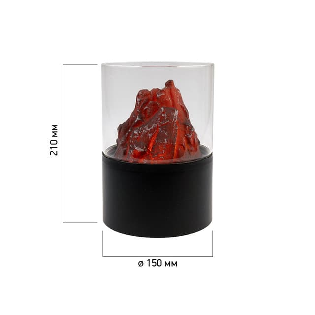 Декоративный светильник «Лава» имеет размеры 21 см в высоту и 15 см в диаметре. Причудливая игра огня в раскаленной горной породе, медленно тлеющая лава создают ощущение комфорта и тепла, заставляя подолгу любоваться великолепным зрелищем. Светильник получает питание от 3 батареек типа АА. Автономность — важная характеристика, которая дает независимость от стационарной розетки и гарантирует безопасность. Интерьерный декор можно использовать в качестве ночника, поскольку светодиоды экономно расходуют заряд.