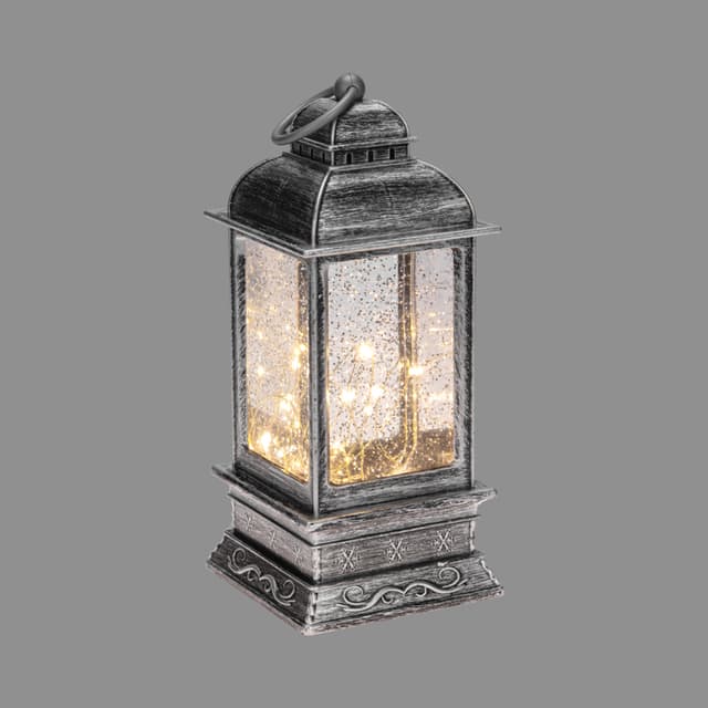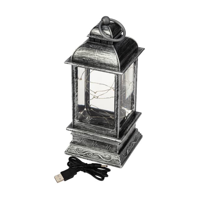 Декоративный светильник «Сияние» высотой 24 см выполнен в цвете серый металлик с эффектом состаренной поверхности. Прозрачная колба, наполненная специальной жидкостью, подсвечивается 18 диодами, которые излучают приятный белый свет теплого оттенка. Серебристое конфетти наполняет светильник великолепным сиянием, заставляющим подолгу наблюдать за причудливой игрой мерцающих частиц. Изделие получает питание от 4 батареек типа ААА, что делает его мобильным и абсолютно безопасным. В комплект входит USB-кабель, позволяющий подключить фонарь к сети через адаптер. В случае потери или порчи шнура питания из комплекта в качестве замены использовать шнур 18-0235.