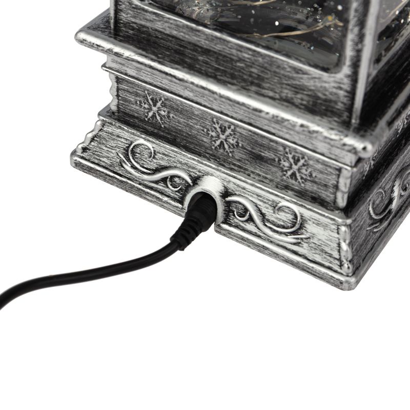 Декоративный светильник «Сияние» высотой 24 см выполнен в цвете серый металлик с эффектом состаренной поверхности. Прозрачная колба, наполненная специальной жидкостью, подсвечивается 18 диодами, которые излучают приятный белый свет теплого оттенка. Серебристое конфетти наполняет светильник великолепным сиянием, заставляющим подолгу наблюдать за причудливой игрой мерцающих частиц. Изделие получает питание от 4 батареек типа ААА, что делает его мобильным и абсолютно безопасным. В комплект входит USB-кабель, позволяющий подключить фонарь к сети через адаптер.