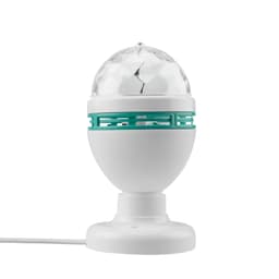 Светодиодная диско-лампа с цоколем E27 — это повод устроить веселую вечеринку прямо у вас дома, не дожидаясь особого повода. Изделие внешне напоминает привычную лампочку, которую можно вкрутить в люстру, бра, торшер или использовать специальную поставку с электрическим кабелем и штепсельной вилкой. Внутри находится моторчик, который приводит в движение купол. Устройство создает эффект светомузыки, отбрасывая разноцветные блики на окружающие предметы. Диско-лампа с тремя светодиодами предназначена для использования в помещениях с умеренной влажностью.