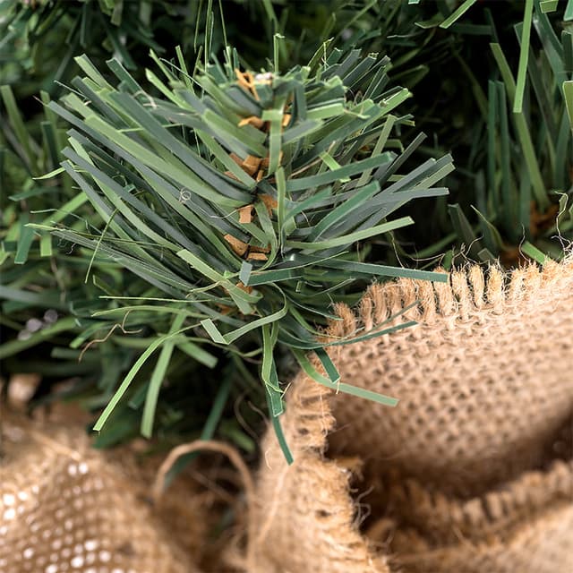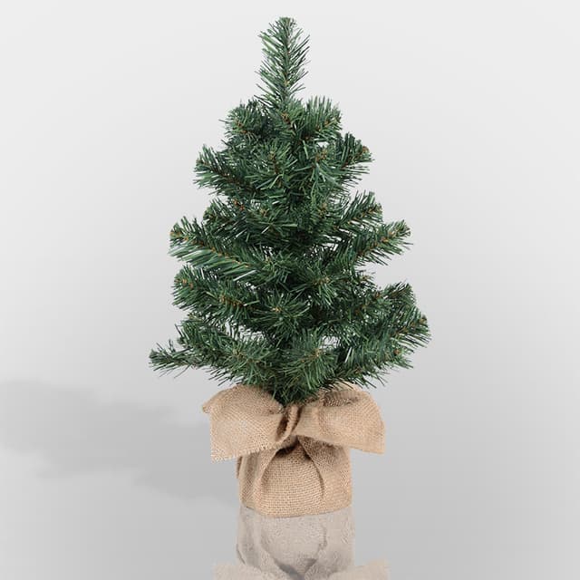Елочка высотой 45 см в плетеном мешочке — красивая настольная композиция, которая прекрасно подойдет для оформления домашнего или офисного интерьера в новогодние праздники. Пушистые ветки, выполненные из ПВХ, имитируют натуральную хвою и совсем не колются. В текстильном мешке скрывается устойчивая подставка. Поливинилхлоридная пленка не выцветает, не разрушается со временем и долгие годы сохраняет свой первоначальный вид. Для создания эффектного декора, который подарит праздничное настроение, дополните елочку светящимися фигурками, бантами, гирляндой.