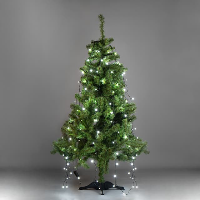 Елочная гирлянда с кольцом и 7 нитями по 1,5 м — это простое и удобное решение для украшения новогодних елей в квартире или доме. Изделие сконструировано таким образом, чтобы пользователи тратили минимум времени на оформление праздничного дерева. Гирлянда выполнена из темно-зеленого провода, сложенного в виде кольца, питающий шнур имеет длину 3 метра. К основанию крепятся 7 нитей со 105 диодами белого свечения. Достаточно просто повесить кольцо на вершину ели, расправить светящиеся элементы — декор готов. Контроллер с 7 динамическими и 1 статичным режимами позволяет менять сценарии в соответствии с настроением.