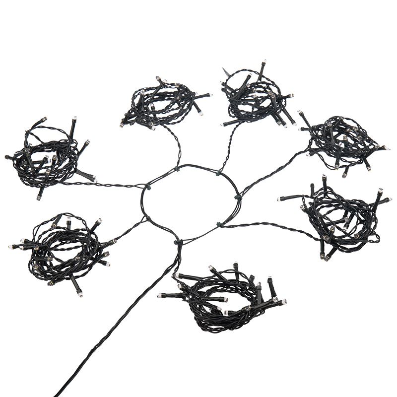 Елочная гирлянда с кольцом и 7 нитями по 1,5 м поможет в считаные минуты создать эффектный декор новогодней ели. Конструкция в виде кольца с длинными нитями, на которых расположены светодиоды, легко размещается на вершине елки. Для подключения к электросети предусмотрен трехметровый кабель — удлинитель не требуется. 105 диодов светятся разноцветными огнями, разбрасывая блики и заряжая окружающих веселым настроением. Контроллер с 8 режимами позволяет легко менять динамику свечения одним нажатием кнопки. Гирлянда с защитой IP20 станет прекрасным украшением квартиры, частного дома, офиса.