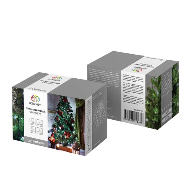 Елочная гирлянда с кольцом и 7 нитями по 1,8 м — это эффектное украшение новогодней ели, которое устанавливается буквально за минуту. Конструкция выполнена в виде кольца, к которому крепятся отдельные отрезки провода со светодиодами. Достаточно поместить кольцо на вершину елки, распределить нити между ветками или оставить их свободно свисать — оригинальный декор готов. 126 светодиодов излучают белый свет, имитируя сверкающий иней, и меняют режимы при помощи контроллера. В устройстве управления предусмотрено 8 режимов свечения. Гибкий шнур защищен изоляционной оболочкой из темно-зеленого ПВХ, длина питающего шнура — 3 метра.