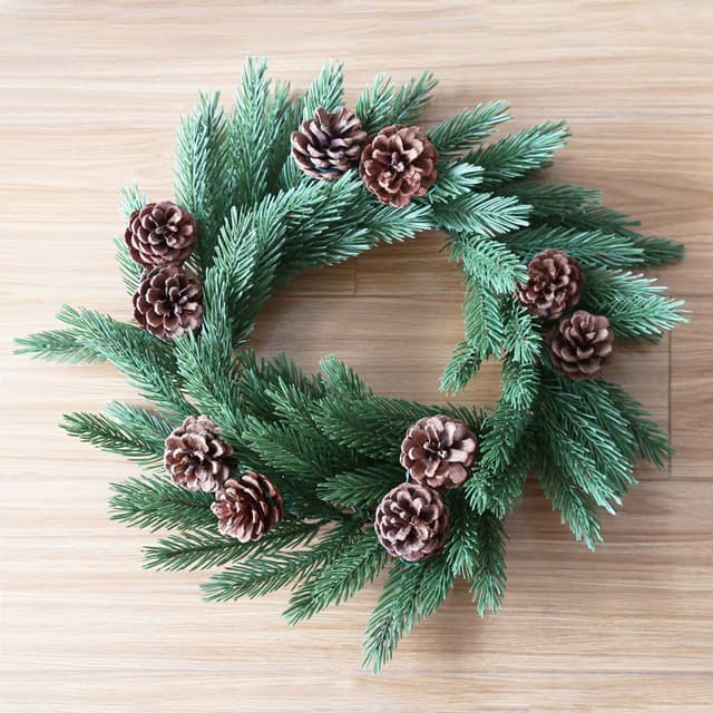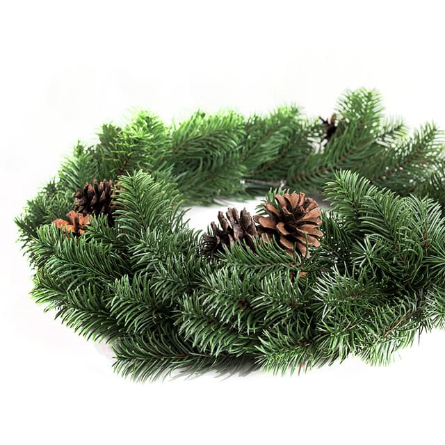 Еловый венок с диаметром 45 см — классический декор входной двери и неизменный символ Нового года. Пушистые хвойные веточки выполнены из мягкого синтетического полимера — иголки не колются. Композиция дополнена еловыми шишками, которые добавляют реалистичности. Венок станет прекрасным украшением квартиры, офиса, загородного дома, создаст атмосферу праздника и подарит веселое настроение окружающим.