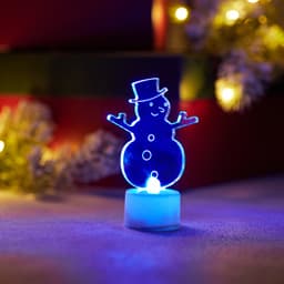 Светодиодная фигурка на подставке «Снеговик в шляпе 2D» выполнена из прочного листового полимера EVA. В основании подставки находится 1 яркий светодиод RGB. Хаотичная смена цветов, плавное перетекание оттенков из одного в другой, 256 всевозможных вариантов — все это создает великолепное световое мини-шоу, которым хочется любоваться. Светодиод экономичен и абсолютно безопасен. Интерьерная декоративная фигурка работает от 3 батареек типа LR44, которые уже входят в комплект.