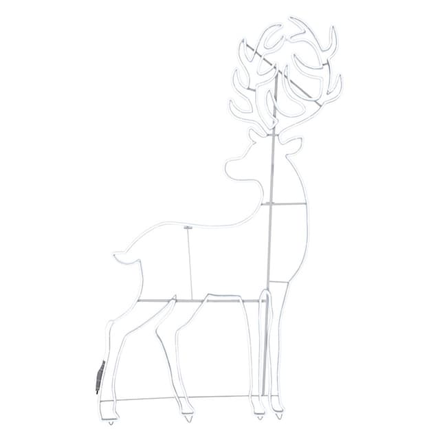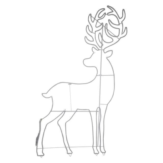 Световая фигура «Сказочный олень» – прекрасный декоративный элемент для любого интерьера: будь то дом, дача, офис или улица. Она прекрасно подходит для использования как внутри помещения, так и снаружи, благодаря высокой степени пылевлагозащищенности. Для изготовления данных фигур используют светодиодный гибкий неон и металлический каркас. В нашем ассортименте представлен большой выбор светодиодных фигур из дюралайта и гибкого неона. Вы можете самостоятельно выбрать тематику и создать праздничную атмосферу. Данная фигура выполнена из неона белого цвета, размер 180х110 см. Питание от сети 230 В.