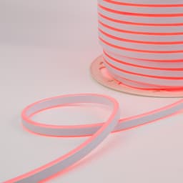 Гибкий неон — это эластичный световой шнур, изготовленный из матовой ПВХ-трубки, внутри которой расположены токопроводящие жилы и светодиодная лента. Используется для рекламной, декоративной и архитектурной подсветки различных объектов, зданий, сооружений и каркасных фигур. Двухсторонний гибкий неон особенно подходит для создания вывесок, а также подсветки витрин и открытых пространств, яркое и равномерное свечение без темных зон. Поставляется в бухтах длиной 100 м. В комплект входит установочный набор (шнур) для простого и надежного подключения к сети. Максимальная подключаемая длина на 1 шнур — 100 м. Следуя несложной инструкции, можно отрезать неон нужной длины: модуль резки составляет 1 м. При подключении гибкого неона к соединительному разъему (муфте) необходимо заизолировать свободное воздушное пространство морозостойким силиконовым герметиком, предотвращающим попадание влаги. Сверху данного соединения необходимо установить термоусаживаемую трубку. Для монтажа двухстороннего неона используются клипсы (приобретаются отдельно). Для крепления неона к металлическому каркасу можно воспользоваться стяжками.