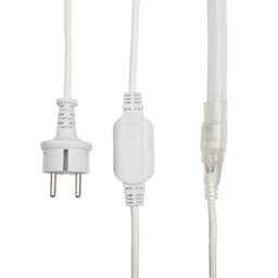 Гибкий неон — это эластичный световой шнур, изготовленный из матовой ПВХ-трубки, внутри которой расположены токопроводящие жилы и светодиодная лента. Используется для рекламной, декоративной и архитектурной подсветки различных объектов, зданий и сооружений. Применяется для украшения интерьера. Круглый гибкий неон особенно подходит для создания каркасных фигур и декоративных инсталляций, где важен равномерный свет со всех сторон. Поставляется в бухтах длиной 50 м. В комплект входит установочный набор (шнур) для простого и надежного подключения к сети. Максимальная подключаемая длина на 1 шнур — 50 м. Следуя несложной инструкции, можно отрезать неон нужной длины: модуль резки составляет 1 м. При подключении гибкого неона к соединительному разъему (муфте) необходимо заизолировать свободное воздушное пространство морозостойким силиконовым герметиком, предотвращающим попадание влаги. Сверху данного соединения необходимо установить термоусаживаемую трубку. Для монтажа используется специальный профиль для круглого неона (приобретается отдельно).