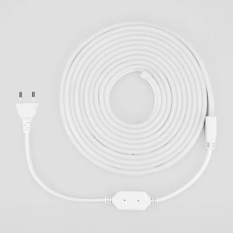 Односторонний гибкий неон SMD 8×16 мм представляет собой шнур, выполненный из полимерной трубки с матовой поверхностью, внутри которого находится светодиодная лента. В пяти метрах изделия умещаются 600 ярких диодов, излучающих теплый белый свет. В комплект входит все необходимое для подключения. Гибкий неон — это готовое решение для создания декоративной, акцентной подсветки помещений, которое не требует особых навыков для осуществления монтажа. Двухсторонняя лента эффектно смотрится в нишах, гардинах, оконных и дверных проемах, различных мебельных элементах.