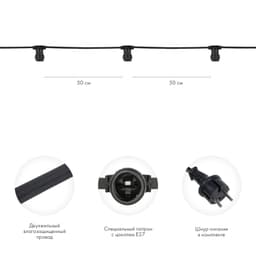 Гирлянда Белт-Лайт – это стильное решение для подсветки фасадов административных зданий, торговых центров, гостиниц, свадебных площадок, мостов и любых других архитектурных сооружений. Прекрасно подходит для создания перетяжек между деревьями или столбами в парках, садах и скверах. Также Белт-Лайт часто используется для украшения больших городских елей. Гирлянда представляет собой морозостойкий двухжильный провод из каучука (резины), на котором расположены патроны с цоколем Е27. Каждый патрон оснащен специальным резиновым уплотнительным кольцом, сохраняющим эластичность даже при экстремальных отрицательных температурах. Благодаря уплотнительному кольцу при любом положении лампы достигается степень защиты IP65. Для подключения к сети 220В предусмотрен шнур с евровилкой. При необходимости вилку можно отрезать, подключить трансформатор на 24 В и использовать лампы на 24В (оба компонента приобретаются отдельно). Блок питания на 24В подбирается исходя из количества и мощности используемых ламп. Белт-Лайт можно разрезать в любом месте, чтобы получить нужную длину, соответствующую конкретным целям и задачам (при условии герметизации оголенного участка во избежание попадания влаги). При монтаже гирлянду необходимо крепить к металлическому тросу, так как она не является самонесущей.