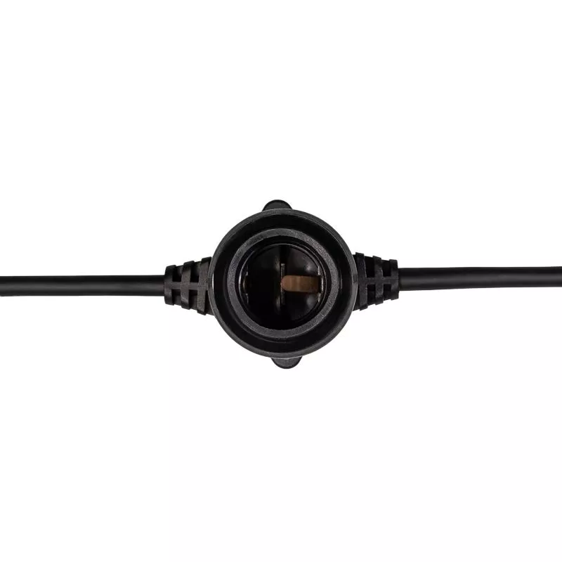 Гирлянда представляет собой морозостойкий двухжильный прорезиненный ПВХ-провод, на котором расположены патроны с цоколем Е27. Каждый патрон оснащен специальным резиновым уплотнительным кольцом, сохраняющим эластичность даже при экстремальных отрицательных температурах. Благодаря уплотнительному кольцу при любом положении лампы достигается степень защиты IP65.