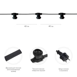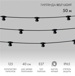 Гирлянда Белт-Лайт – это стильное решение для подсветки фасадов административных зданий, торговых центров, гостиниц, свадебных площадок, мостов и любых других архитектурных сооружений. Прекрасно подходит для создания перетяжек между деревьями или столбами в парках, садах и скверах. Также Белт-Лайт часто используется для украшения больших городских елей. Гирлянда представляет собой морозостойкий двухжильный провод из каучука (резины), на котором расположены патроны с цоколем Е27. Каждый патрон оснащен специальным резиновым уплотнительным кольцом, сохраняющим эластичность даже при экстремальных отрицательных температурах. Благодаря уплотнительному кольцу при любом положении лампы достигается степень защиты IP65. Для подключения к сети 220В предусмотрен шнур с евровилкой. При необходимости вилку можно отрезать, подключить трансформатор на 24 В и использовать лампы на 24В (оба компонента приобретаются отдельно). Блок питания на 24В подбирается исходя из количества и мощности используемых ламп. Белт-Лайт можно разрезать в любом месте, чтобы получить нужную длину, соответствующую конкретным целям и задачам (при условии герметизации оголенного участка во избежание попадания влаги). При монтаже гирлянду необходимо крепить к металлическому тросу, так как она не является самонесущей.
