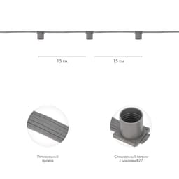 Белт Лайт представляет собой токопроводящую многожильную шину в виде ленты. Через определённый интервал на ней последовательно закреплены патроны Е27. Расстояние между патронами фиксировано, и в зависимости от модификации устройства может составлять 10, 15, 20 или 40 сантиметров. Гирлянды «Белт Лайт» могут быть двух типов – двужильные и пятижильные. Пятижильные имеют 2 модификации: для уличного применения с высоким уровнем влагозащиты и без специальной защиты для помещений. Двужильный «Белт Лайт» имеет только влагозащищенное исполнение. Для не влагозащищенного пятижильного провода Белт Лайт сделано исключение: на нем специальные патроны, имеющие цоколь E27 с «ножевыми» контактами, которые могут быть установлены в любом месте. Двужильные гирлянды имеют только режим непрерывного свечения, их подключают прямо к сети 220V. В отличие от них, пятижильные системы «Белт Лайт» питаются через контроллер. Они могут работать в светодинамическом режиме с использованием различных световых эффектов, например, «бегущий огонь». Традиционно гирлянды «Белт Лайт» оснащаются небольшими лампами накаливания. Но в настоящее время они уступают место разноцветным светодиодным лампам. На стороне последних огромные преимущества: маленькие размеры, увеличенный до 100 000 часов ресурс, хорошая влагозащищенность, широкий диапазон рабочих температур. Они обладают недосягаемой для ламп накаливания насыщенностью цветов и яркостью свечения, невысокой потребляемой мощностью (менее 5 Вт). Гирлянду можно разрезать, а фрагменты собирать в электрическую цепь и подключать через контроллер или напрямую по соответствующей схеме. Гирлянда «Белт Лайт» прекрасно подходит для декорирования любых архитектурных сооружений или для создания «перетяжек» между опорами освещения или деревьями. Данная гирлянда имеет 5 жил. 4 канала. Расстояние между патронами 15 см. Для работы в светодинамическом режиме с использованием различных световых эффектов необходим контроллер арт. 332-115, 332-116, 332-117, 332-118.