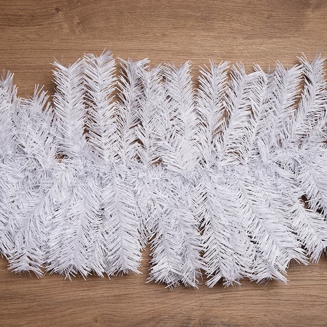 Еловая гирлянда – это изящное решение для создания праздничной атмосферы в любом интерьере. Гирлянда используется для украшения дверных проемов, арок, ниш, входных групп или веранд. Также гирлянду можно обернуть вокруг торшера, уложить на полу, закрепить на стене или перилах. Каждая еловая ветка в гирлянде тщательно выполнена с большим вниманием к деталям, что создает естественный и реалистичный вид хвои. Густота веток и их натуральная форма придают гирлянде объемный и роскошный вид. Диаметр гирлянды составляет 36 см. Белоснежная гирлянда, словно свежевыпавший снег, придает интерьеру волшебное сияние и создает атмосферу праздника. Еловая гирлянда отличается не только красотой, но и высоким качеством исполнения, что делает ее идеальным выбором для создания уникальной новогодней атмосферы в вашем доме или офисе.
