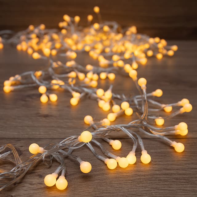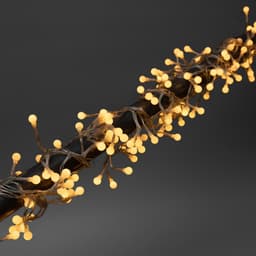 Гирлянда «Мишура» длиной 3 метра открывает большие возможности в области светового декора. Изделия можно соединять друг с другом при помощи простого разъема и получать украшение до 60 метров, состоящее из элементов одного или разных цветов. Гирлянда управляется контроллером с 8 режимами свечения, для подключения в розетку предусмотрен длинный кабель — 3 метра. Гирлянда «Мишура» имеет 288 светодиодов в виде шариков, светящихся ярко-желтыми огнями. Защита IP20 подразумевает домашнее использование.