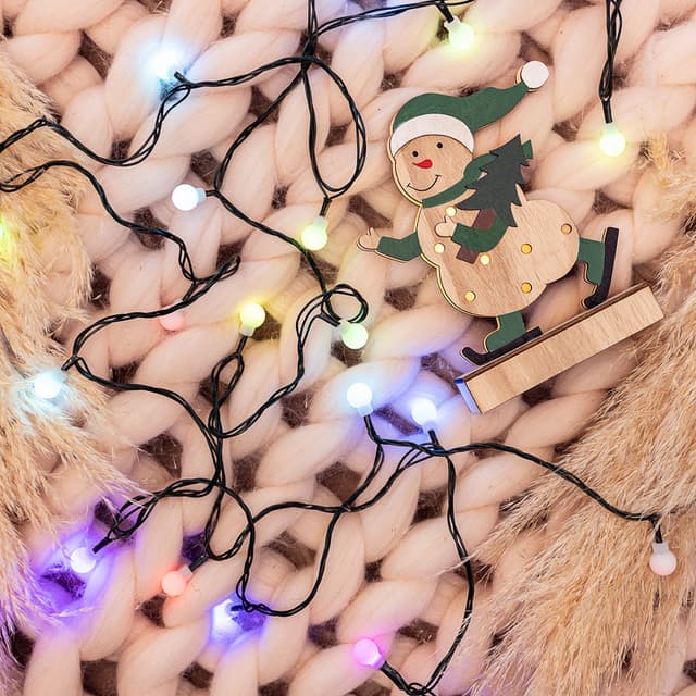 Гирлянда «Мультишарики» длиной 5 метров представляет собой электрический провод в изоляционной оболочке из темно-зеленого ПВХ, на котором равномерно размещены яркие светодиоды с несъемными насадками в виде шариков с диаметром 15 мм. Элементы выполнены из матового пластика. 30 диодов светятся разными цветами в режиме хаотичной смены оттенков — всего 256 вариантов. Гирлянда идеально подходит для оформления елок и создания декоративной подсветки в интерьере. Длина питающего шнура 3 метра — удлинитель не понадобится. Можно соединить последовательно до 6 аналогичных гирлянд с помощью штекера на конце кабеля.