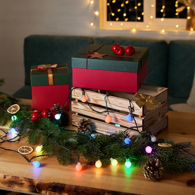 Гирлянда «Мультишарики» длиной 5 метров — это настоящий праздник у вас дома. 30 ярких диодов светятся разноцветными огнями, меняя оттенки в хаотичном порядке. Диоды находятся внутри пластиковых шариков с диаметром 18 мм, корпус которых эффективно рассеивает поток, создавая мягкую подсветку. Светодиоды не нагреваются и экономно расходуют электроэнергию. Защита IP20 предполагает использование изделия в интерьере и сухих отапливаемых помещениях. Есть возможность соединить до 6 гирлянд, чтобы получить украшение нужной длины. Трехметровый питающий шнур позволяет разместить декор в любом удобном месте.