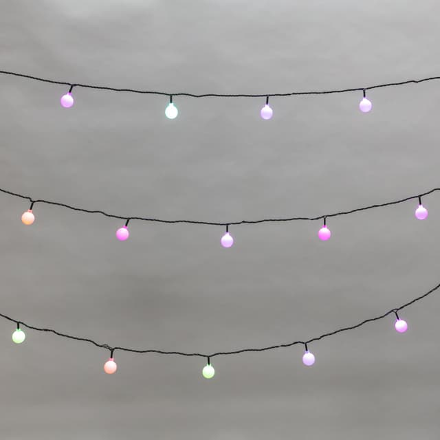Гирлянда «Мультишарики» длиной 5 метров — эффектный декор, который гармонично украсит интерьер любого стилевого направления и подарит праздничное настроение окружающим. 25 светодиодов RGB помещены в матовые шарики с диаметром 25 мм. Матовый корпус каждого элемента рассеивает яркие лучи, создавая мягкое, приятное для глаз свечение. Гирлянда работает в режиме хаотичной смены цветов — всего 256 разных оттенков. Можно соединить до 6 изделий и получить украшение нужной длины. Для включения в розетку предусмотрен трехметровый питающий шнур с вилкой — удлинитель не потребуется.