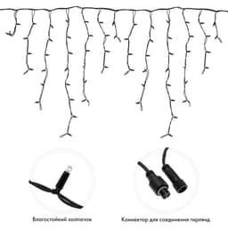 Гирлянда Айсикл (Бахрома) представляет собой гибкий горизонтальный шнур-шину, к которому через определенные промежутки крепятся вертикальные нити разной длины со светодиодами. Гирлянда имитирует сосульки и может послужить оригинальным решением при украшении карнизов, арок, фасадов зданий, витрин магазинов, а также стать эффектным элементом декора внутри помещений. Благодаря использованию светодиодов отличительной особенностью гирлянды является превосходная яркость и низкое энергопотребление. При длине 3,2 м гибкая направляющая имеет 24 вертикальные нити от 20 до 90 см. Данная гирлянда имеет белый цвет свечения и предназначена для размещения как внутри помещений, так и снаружи. Важной особенностью данного исполнения является каучуковый провод, благодаря которому гирлянда отличается высокой надежностью и может быть использована в условиях российского климата, даже в самых холодных регионах страны!