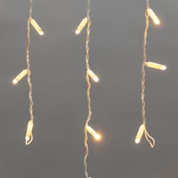 Гирлянда Айсикл (Бахрома) представляет собой гибкий горизонтальный шнур-шину, к которому через определенные промежутки крепятся вертикальные нити разной длины со светодиодами. Гирлянда имитирует сосульки и может послужить оригинальным решением при украшении карнизов, арок, фасадов зданий, витрин магазинов, а также стать эффектным элементом декора внутри помещений. Благодаря использованию светодиодов отличительной особенностью гирлянды является превосходная яркость и низкое энергопотребление. При длине 4,8 м гибкая направляющая имеет 48 вертикальных нитей от 20 до 60 см. Гирлянда имеет теплый белый свечения и предназначена для использования как внутри помещений, так и снаружи.