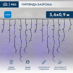 Гирлянда Айсикл (Бахрома) представляет собой гибкий горизонтальный шнур-шину, к которому через определенные промежутки крепятся вертикальные нити разной длины со светодиодами. Гирлянда имитирует сосульки и может послужить оригинальным решением при украшении карнизов, арок, фасадов зданий, витрин магазинов, а также стать эффектным элементом декора внутри помещений. Благодаря использованию светодиодов отличительной особенностью гирлянды является превосходная яркость и низкое энергопотребление. При длине 5,6 м гибкая направляющая имеет 48 вертикальных нити от 20 до 90 см. Наличие мерцающего эффекта привлекает внимание и значительно преображает украшенную поверхность (мерцает каждый пятый светодиод). Данная гирлянда имеет синий цвет свечения и предназначена для использования как внутри помещений, так и снаружи. Важной особенностью данного исполнения является каучуковый провод, благодаря которому гирлянда отличается высокой надежностью и может быть использована в условиях российского климата, даже в самых холодных регионах страны!