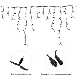 Гирлянда Айсикл (Бахрома) представляет собой гибкий горизонтальный шнур-шину, к которому через определенные промежутки крепятся вертикальные нити разной длины со светодиодами. Гирлянда имитирует сосульки и может послужить оригинальным решением при украшении карнизов, арок, фасадов зданий, витрин магазинов, а также стать эффектным элементом декора внутри помещений. Благодаря использованию светодиодов отличительной особенностью гирлянды является превосходная яркость и низкое энергопотребление. При длине 5 м гибкая направляющая имеет 48 вертикальные нити от 10 до 70 см. Данная гирлянда имеет белый цвет свечения и предназначена для размещения как внутри помещений, так и снаружи. Важной особенностью данного исполнения является каучуковый провод, благодаря которому гирлянда отличается высокой надежностью и может быть использована в условиях российского климата, даже в самых холодных регионах страны!