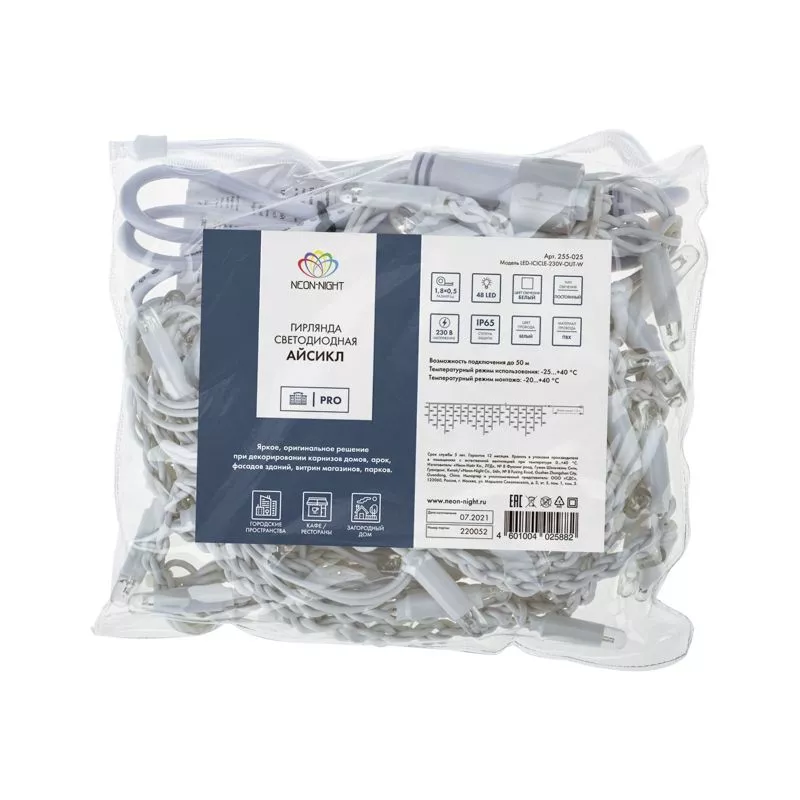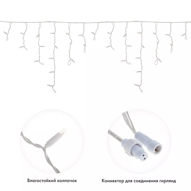 Гирлянда светодиодная Бахрома (Айсикл) 1,8х0,5м 48 LED БЕЛЫЙ белый ПВХ IP65 постоянное свечение 230В блок в комплекте NEON-NIGHT