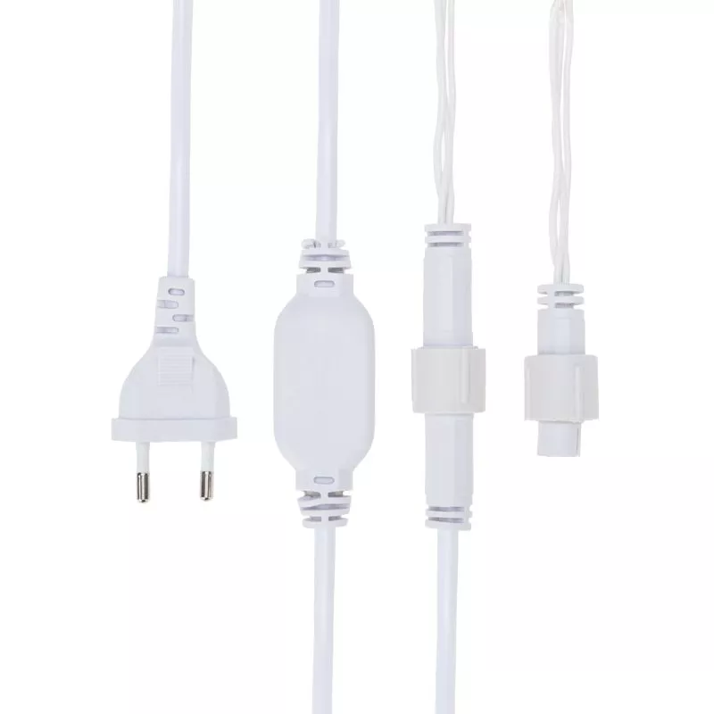 Гирлянда имеет белый цвет свечения и предназначена для использования как внутри помещений, так и снаружи.