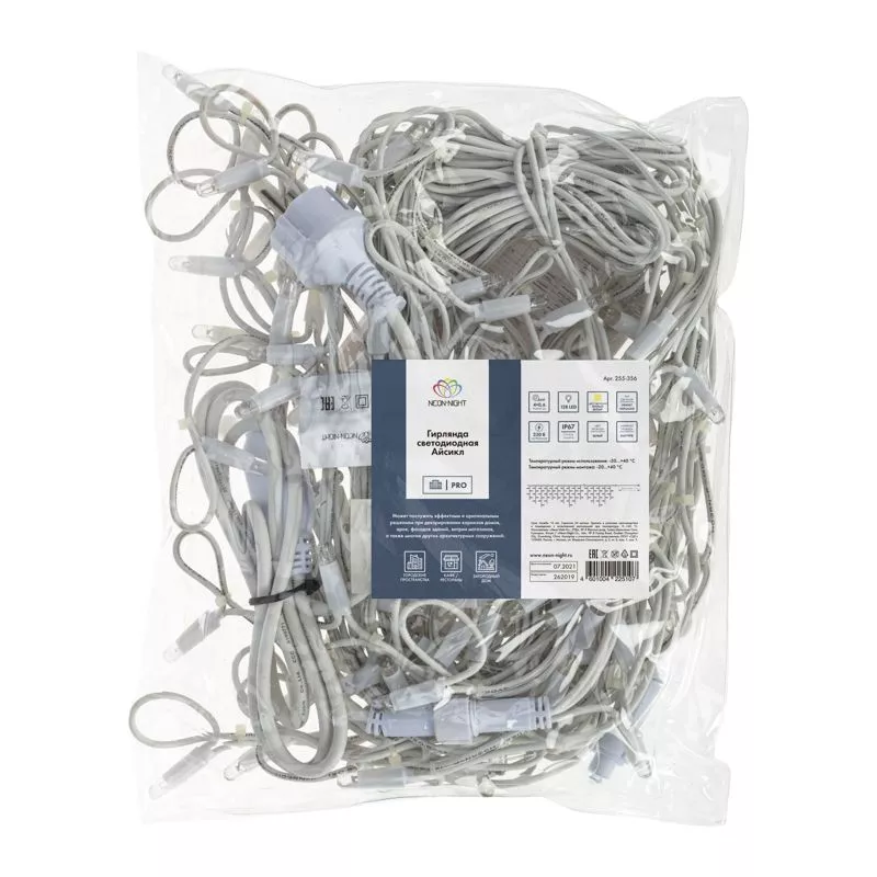 Гирлянда светодиодная Бахрома (Айсикл) 4,0х0,6м 128 LED ТЕПЛЫЙ БЕЛЫЙ белый каучук 3,3мм IP67 эффект мерцания 230В нужен блок 315-001 NEON-NIGHT