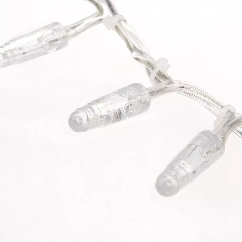 Светодиодная гирлянда Кластер представляет собой провод с последовательно расположенными длинными отводами, на концах которых расположены яркие светодиоды.