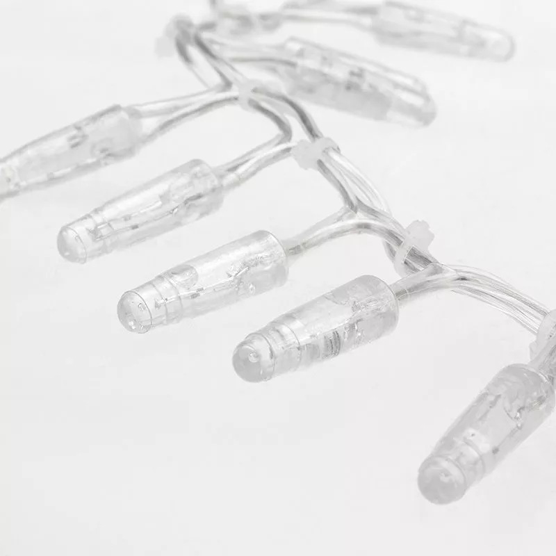 Светодиодная гирлянда Кластер представляет собой провод с последовательно расположенными длинными отводами, на концах которых расположены яркие светодиоды.