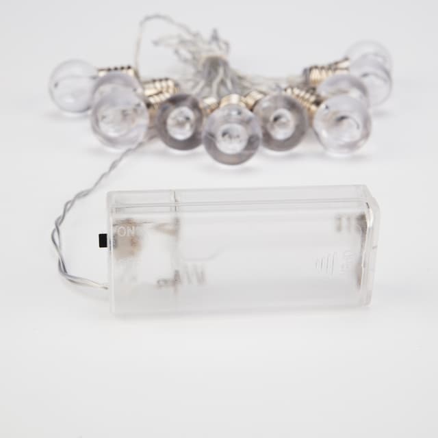 Светодиодная гирлянда «Лампочки» длиной 1,6 метра — прекрасный вариант для оформления интерьерных предметов, находящихся в отдалении от розетки. Изделие питается от 2 батареек АА и не нуждается в подключении к стандартной электросети. Такой тип питания гарантирует безопасность в использовании. 10 декоративных лампочек излучают теплый белый свет, озаряя пространство вокруг. Гирлянда с защитой IP20 предназначена для использования в сухих отапливаемых помещениях.