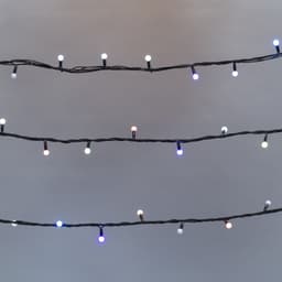Гирлянда Мультишарики представляет собой провод, на котором располагаются сверхъяркие светодиоды с шагом 10 см. На светодиодах находятся насадки в виде шариков диаметром 13 мм. Мультишарики используются для украшения уличных елок, витрин магазинов, перилл, а также для декорирования различных помещений. Гирлянда обладает эффектом быстрой смены цветов, что позволяет создавать уникальные светодинамические композиции, совершенно отличные от традиционных световых эффектов, доступных на рынке сегодня. Смена режимов свечения происходит автоматически, согласно встроенным программам. Возможность регулировки не предусмотрена. Степень влагозащиты IP65 и ПВХ-провод обеспечивают возможность использования гирлянды на открытом воздухе.