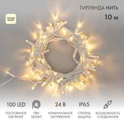 Гирлянда Нить представляет собой провод с последовательно расположенными коротенькими отводами, направленными в разные стороны. На концах этих отводов расположены яркие светодиоды. Благодаря своей универсальной конструкции гирлянда особенно подходит для украшения как уличных, так и домашних елей, а также для оформления витрин, окон, колонн, элементов интерьера и различных композиций. Также гирлянда Нить часто используется для проектов по украшению объектов разной значимости, так как ее можно соединить до 50 метров, подключив к одному трансформатору (арт. 531-100, 531-311 или 531-312, приобретается отдельно). Гирлянда предназначена для использования как внутри помещений, так и снаружи.