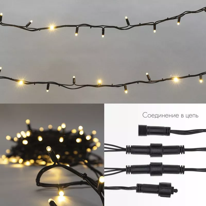 Гирлянда светодиодная Нить 12м 120 LED ТЕПЛЫЙ БЕЛЫЙ черный каучук IP67 постоянное свечение 230В соединяется нужен блок 315-000 NEON-NIGHT