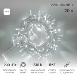 Светодиодная гирлянда Нить (дюраплей) представляет собой эластичный кабель со встроенными светодиодами с шагом ламп 10 см. Применяется для подсветки фасадов зданий, ограждений, мостов, магазинов, арок, деревьев и новогодних елок. Великолепно подходит для красочного оформления витрин. Ударопрочная конструкция идеально подходит для применения на наружных объектах. Благодаря высокой степени влагозащиты гирлянду можно использовать даже в сложных климатических условиях. Предусмотрена возможность последовательного подключения гирлянд. Максимальная длина может достигать 300 м. Максимальное количество гирлянд, подключаемых в одну цепь – 15. Отличительными особенностями гирлянды Нить (дюраплей) стали: повышенная яркость излучаемого света, низкое энергопотребление и непревзойденная надежность. В комплекте 4 модуля по 5 м. Цвет свечения светодиодов – белый. Для подключения необходим шнур питания арт. 315-000 или арт. 315-001 (приобретается отдельно).