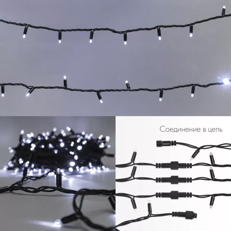 Гирлянда светодиодная Нить 20м 200 LED БЕЛЫЙ черный каучук IP67 эффект мерцания 230В соединяется нужен блок 315-000 NEON-NIGHT