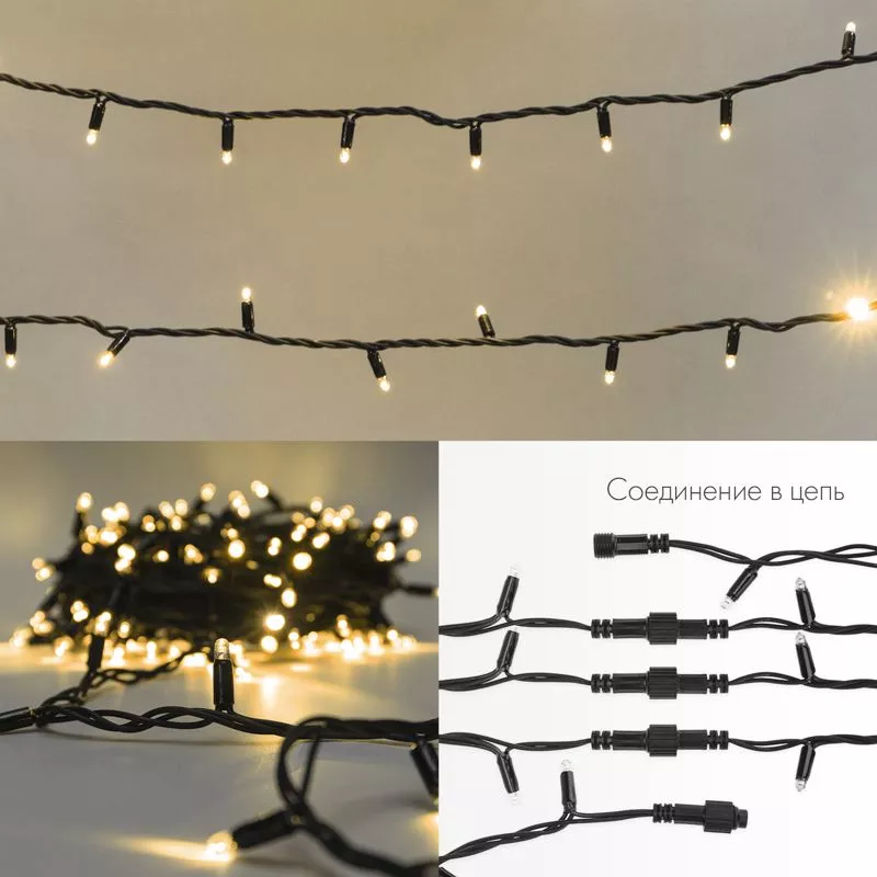 Предусмотрена возможность последовательного подключения гирлянд. Максимальная длина может достигать 100 м. Максимальное количество гирлянд, подключаемых в одну цепь – 5.
