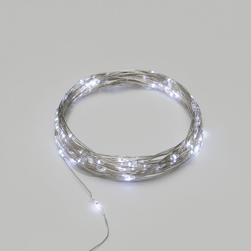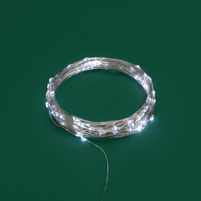 Гирлянда состоит из тонкого провода длиной 10 метров, с расположенными на нем 100 белыми долговечными светодиодами.