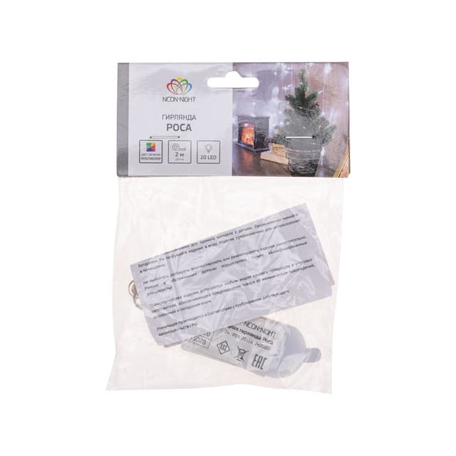 Светодиодная гирлянда «Роса» – прекрасный декоративный элемент, светящийся разными огоньками и создающий атмосферу праздника и уюта. Это отличный способ акцентировать внимание на отдельных предметах интерьера, создать неповторимый арт-объект или использовать в качестве дополнительной подсветки. Гирлянда может эффектно подчеркнуть красоту картины, вазы с цветами, статуэтки или украсить небольшую елочку. Часто «Роса» украшает не только интерьер, но и с успехом применяется на торговых площадках и ярмарках для привлечения внимания к продукции. Гирлянда состоит из тонкого провода длиной 2 метра, с расположенными на нем 20 разноцветными долговечными светодиодами. В качестве питания у данной модели гирлянды выступают батарейки 2хСR2032, которые идут в комплекте. Создайте атмосферу праздника с помощью светодиодной гирлянды «Роса»!