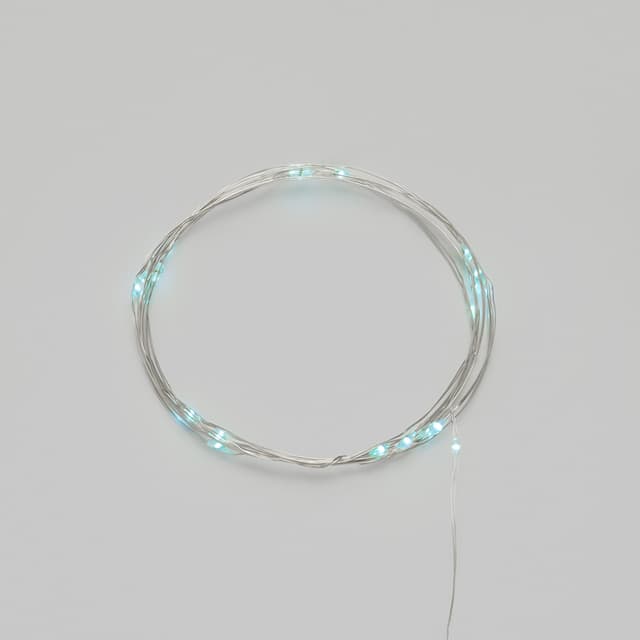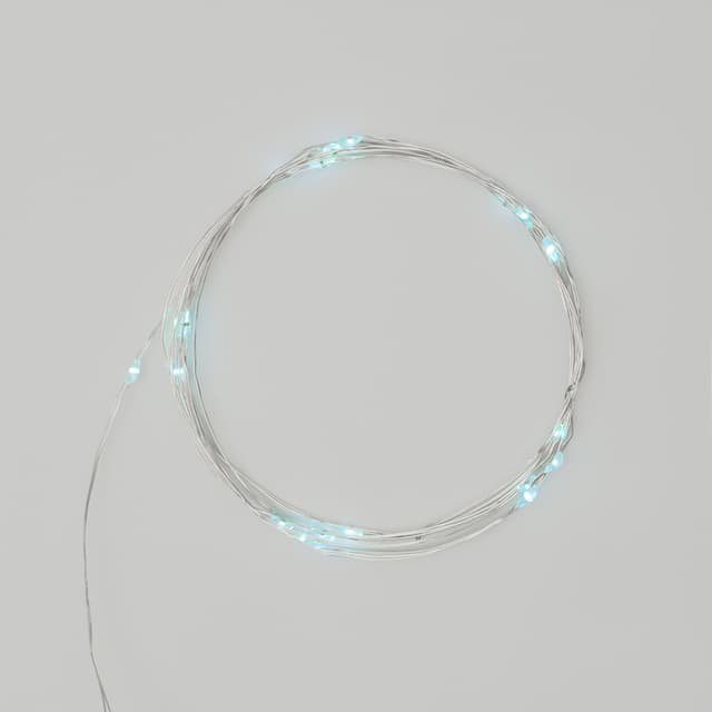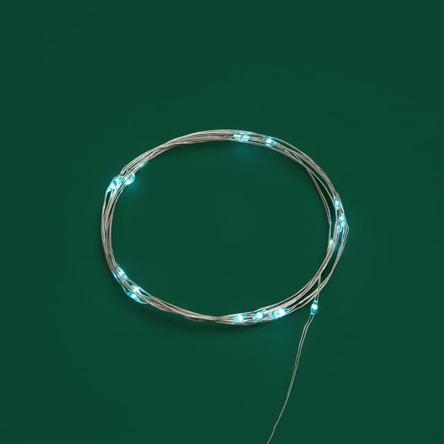 Гирлянда «Роса» длиной 2 метра — мобильное светодиодное украшение, питающееся от двух батареек CR2032. Блок для элементов питания располагается на конце электрического кабеля. Гирлянду можно использовать для оформления любых интерьерных объектов. 20 диодов светятся бирюзовыми огнями, работают до 48 часов от двух элементов питания и практически не нагреваются. Безопасное украшение прекрасно подходит для декора ваз, оконного текстиля, цветочных букетов, уличных растений, оформления детских комнат.